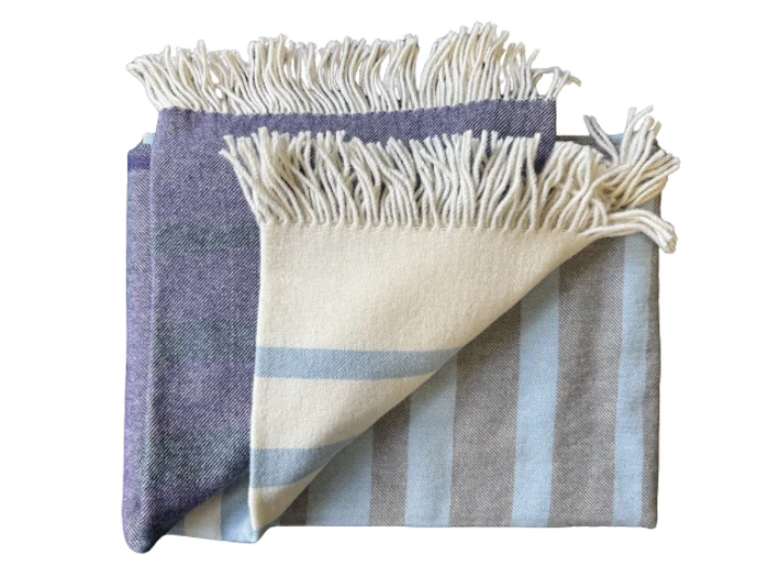 Silkeborg Uldspinderi, Jura, Plaid, Blå, Lilla, Råhvid, 50% Alpaca, 50% Merino uld, B:130xL:190cm