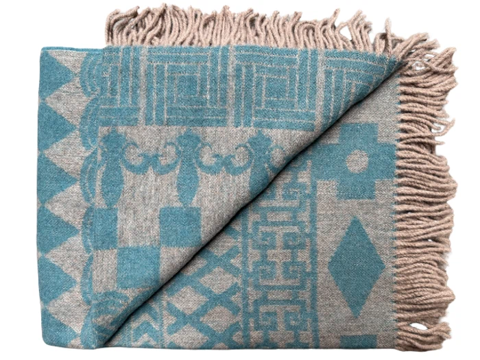 Silkeborg Uldspinderi, Teodor 1086, Plaid, Beige, Blå, 50% Alpaca, 50% Uld, B:130 x L:190 cm