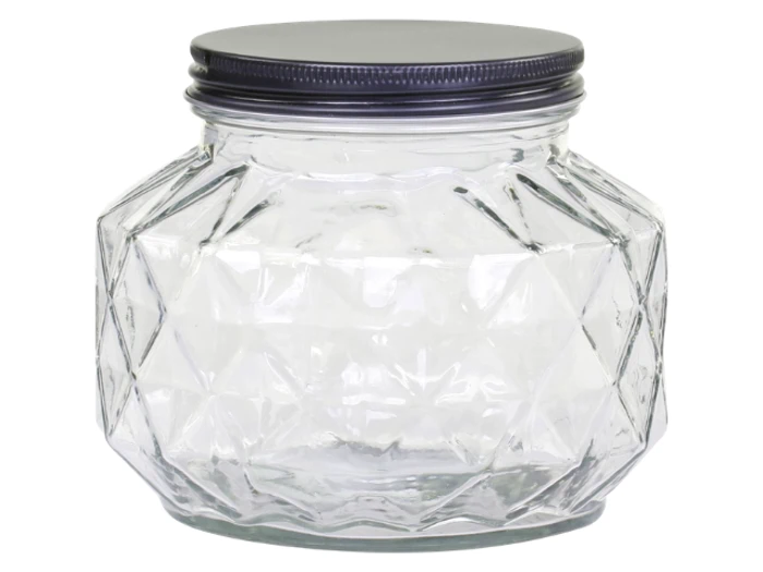 Chic Antique, Opbevaringsglas m. diamantudskæring, Klar, Glas, Jern, H:13,5 x Ø:16 cm